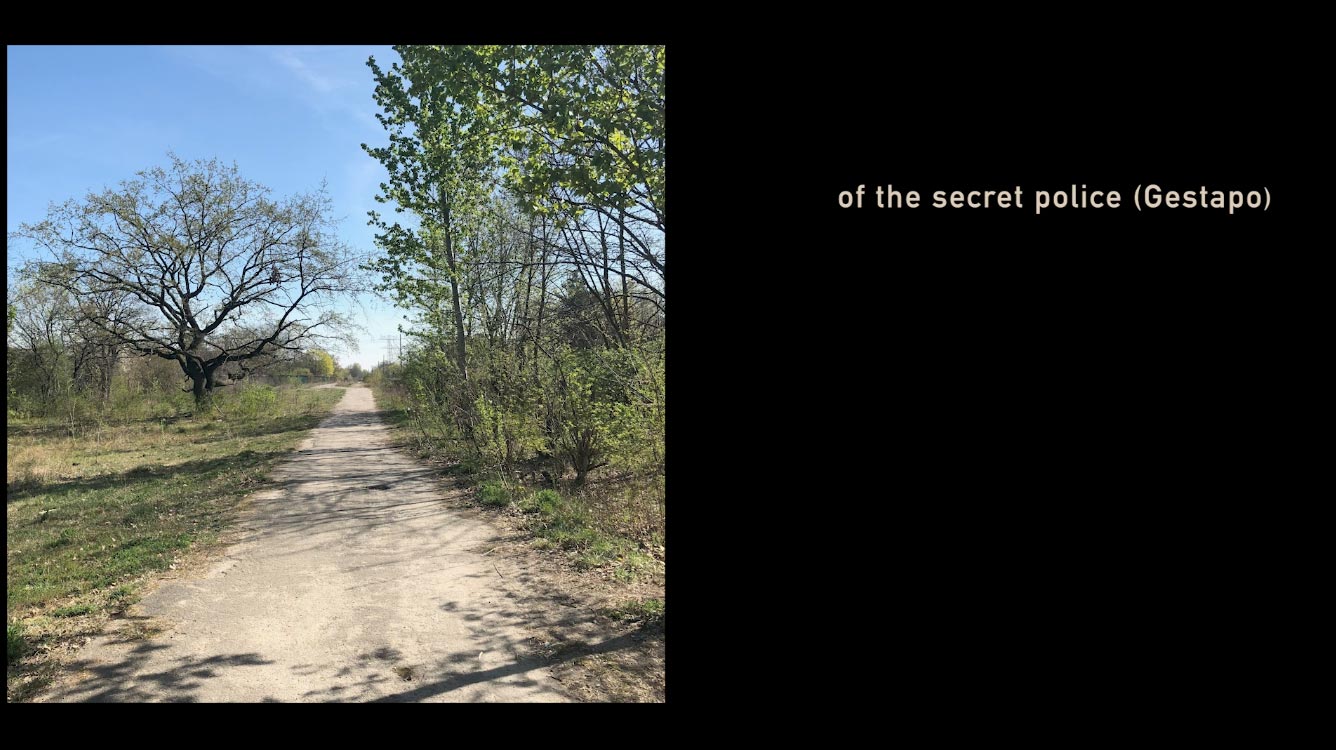 Ausgehend vom jeweiligen eigenen »Standort« wurden fotografische Notationsverfahren und Verfahren der Wegbeschreibungen gewählt um das komplexe System von Gewalt des NS-Systems, das Berlin durchwebte, erfassen zu können: Außenlager des KZ Sachsenhausen, Arbeitserziehungslager der Geheimen Staatspolizei, Firmensitze, die von Zwangsarbeit profitierten, Gefängnisse.
